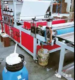 1. 采用专业的冷包覆机设备,使用刮涂或滚涂上胶到 PVC 膜上,上胶量约 100g/m2,同时上胶后的 PVC 膜经过烘道加热后使胶液挥发六成干后再于板材覆合,并以小轮加压,加压时可用电热吹风机进一步加热以增加胶液固化速度,达成快粘效果。