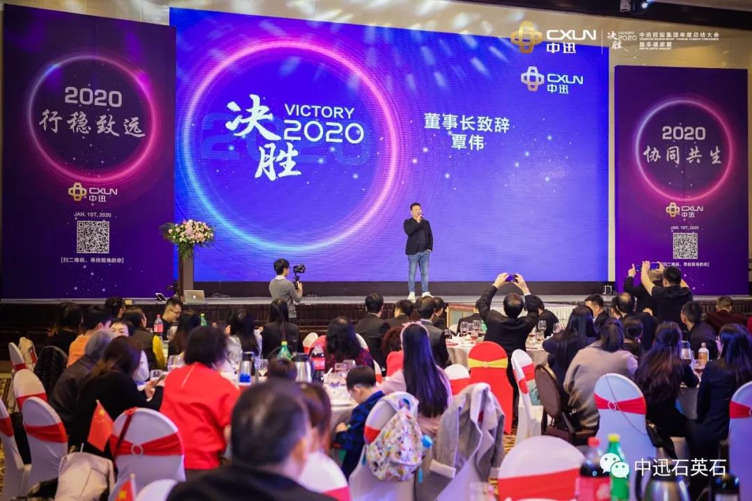 2020年1月1日,决胜2020——中迅集团年度总结大会暨幸福家宴在广东鹤山稻香酒家隆重举行。中迅集团董事长覃伟、总经理覃勇携管理团队与全体员工和合作伙伴共襄盛会,在世界百年未遇大变局之年,在行业变革、跨界、融合的大背景下,制定中迅2020年发展战略。