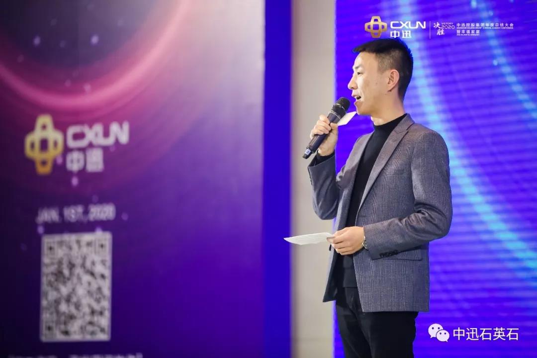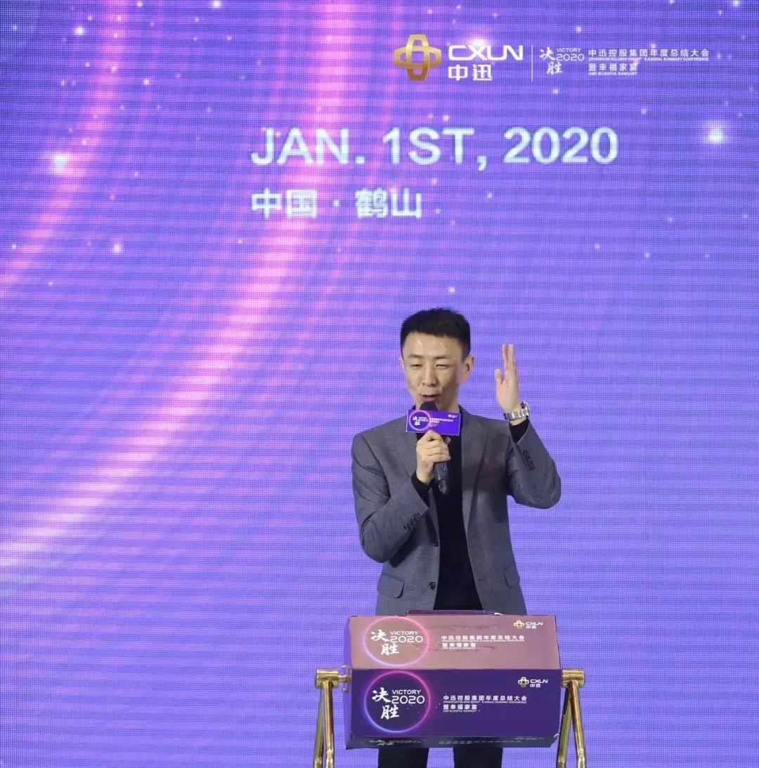 中迅集团总经理覃勇先生在晚宴致辞,对过去一年鼎力支持中迅发展的合作伙伴们,和默默耕耘的中迅员工们,感谢你们的信任和支持,感恩有你们的付出和努力,他表示,我们始终在坚持不断创新和改革的路上,市场上开拓更多的渠道和客户才是王道,2019年国内外市场订单持续增长,2020年继续专注做好专业的事,胜利一定属于我们!