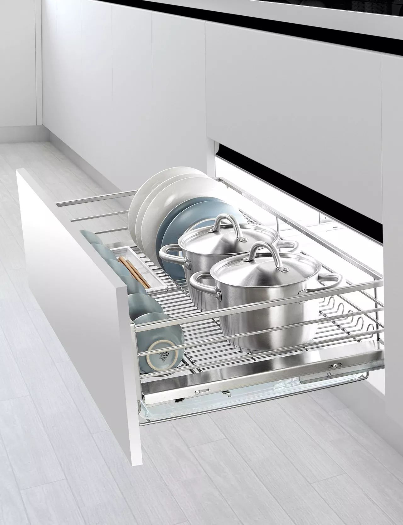 可存放各种锅类、大餐盘、收纳瓶罐等