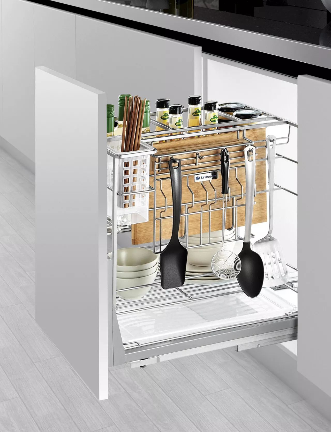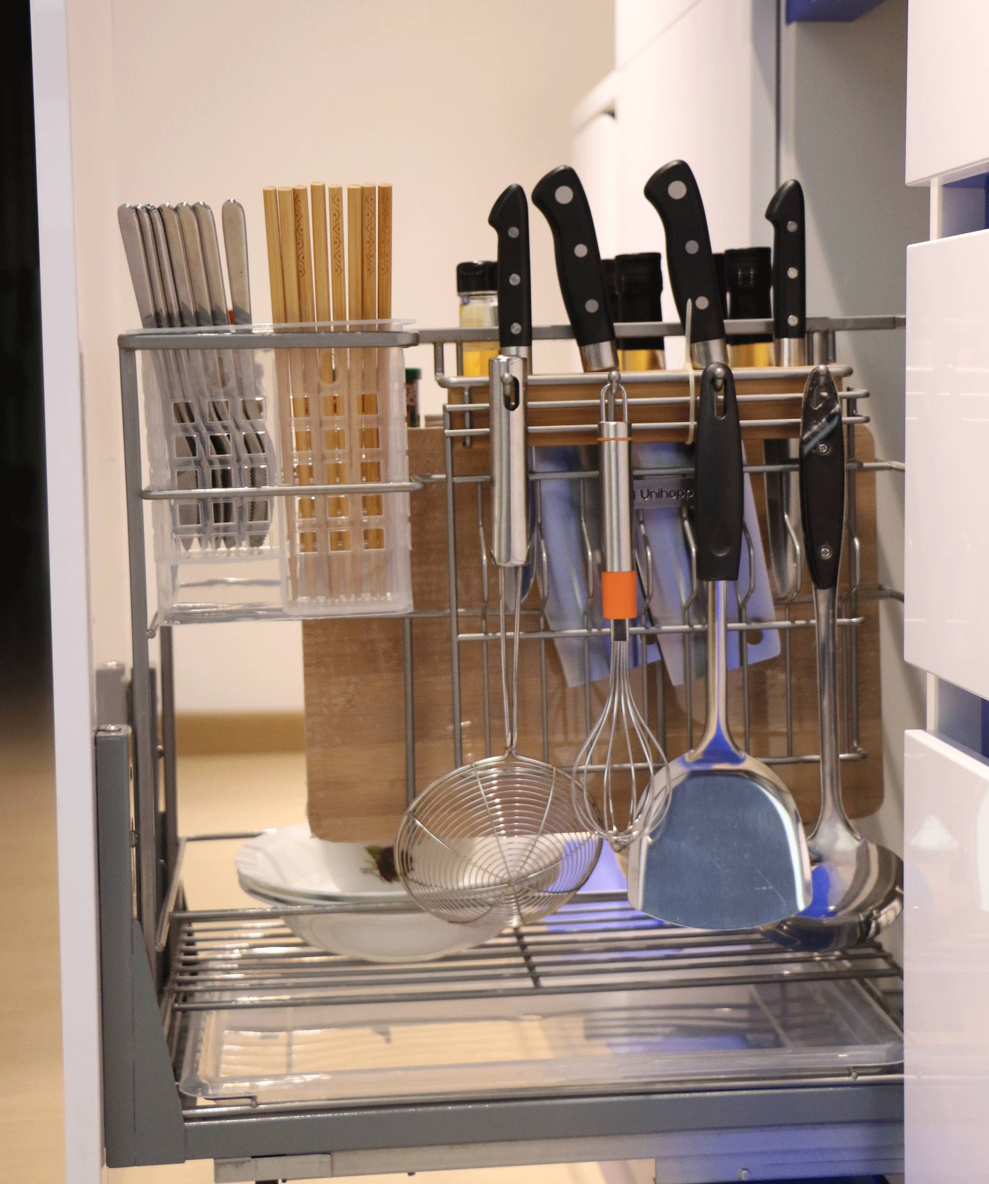 美嘉美塑胶五金本次推出的几款厨房收纳五金产品,就是带着走心的设计需求,为每一位精致生活的您带来厨房增容神器,轻轻松松搞定厨房收纳,让厨房空间增容50%。